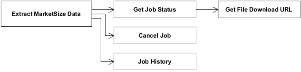 User flow starts with Extract MarketSize Data API call. This API creates new job for Passport data file extraction creation.